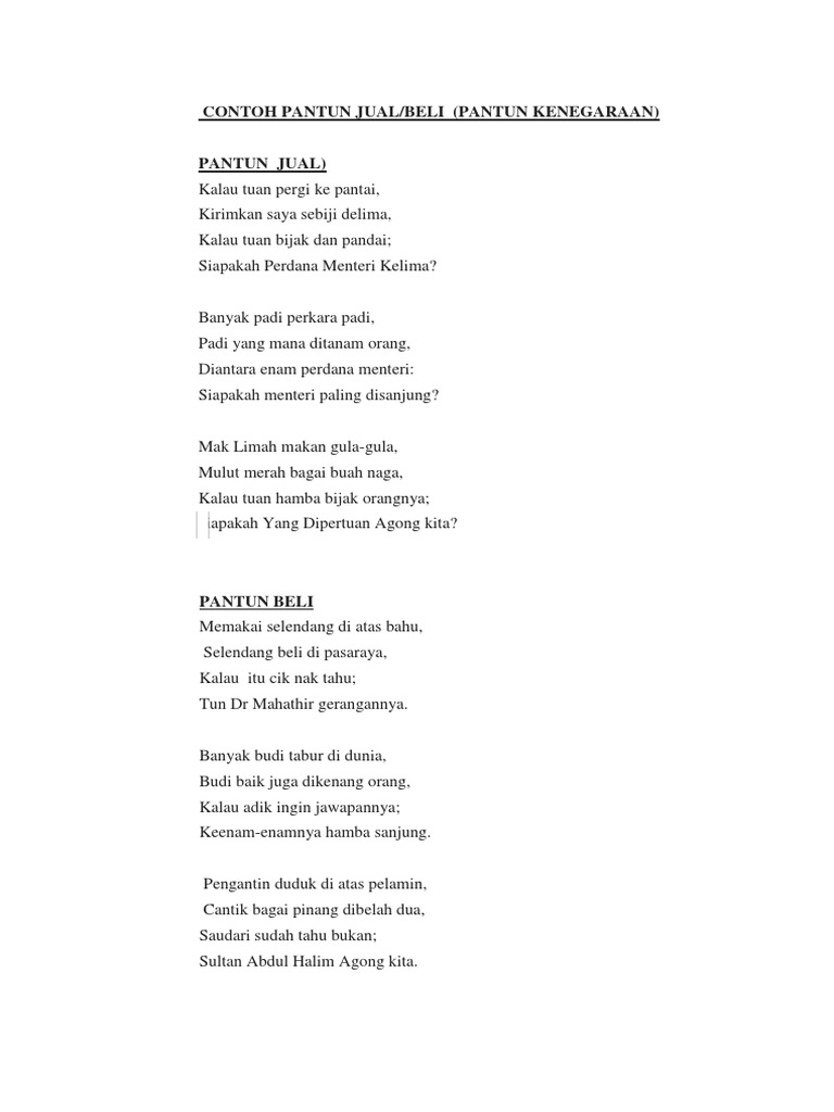 Itulah beberapa contoh terkait dengan pantun dan jenis-jenisnya. Seorang peniaga sedang cuba menjual barang terbarunya. Contoh Surat Perjanjian Kerjasama Jual Beli Tanah Hutang.